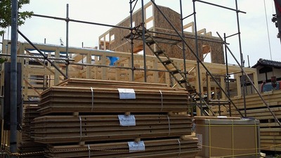1日目で、屋根部分以外は、すべて建て方が完成