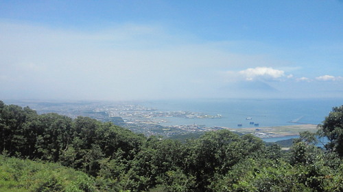 右に見えるのが噴火してる桜島、左の方が鹿児島市内です。